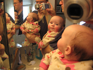 1/28 - 12lbs, 14oz. 4 month checkup/immunizations. The doctor has two bits of good news: Lia is ready to start solids (if we want), and she doesn't need to eat at night anymore. Matt tried feeding Lia some formula laced with baby oatmeal, but she just spit it out. We'll try again sometime soon...